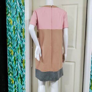 NWT PAULE KA PARIS Pink/Tan Color Block Short Sleeves Virgin Wool Dress Size 6