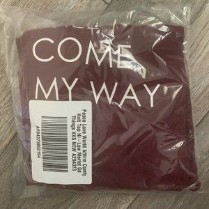 NWT (NEW IN BAG) PEACE LOVE WORLD AFFIRM COMFY KNIT HI-LOW "GOOD THINGS WILL COME MY WAY" SHIRT SIZE XXS. COLOR IS MERLOT.