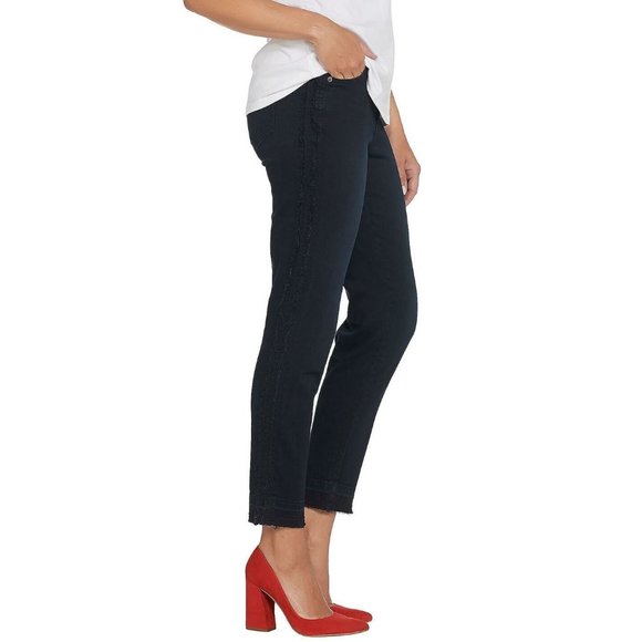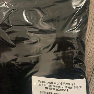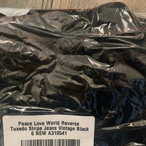 NWT (NEW IN BAG) PEACE LOVE WORLD REVERSE TUXEDO STRIPE VINTAGE BLACK JEANS SIZE 6.