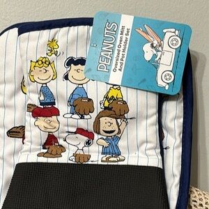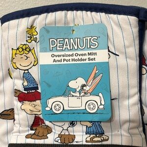 NWT! PEANUTS SNOOPY BASEBALL OVERSIZED OVEN MITT AND POTHOLDER SET