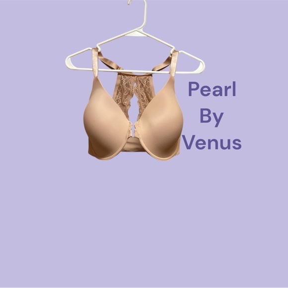 NWT!!! This is one “T” back bra in nude, Pearl by Venus. In a hard to find size, 36DDD, this bra is perfect for racerback style shirts, pulls the straps in tighter to the neck with lace bands in the back to help with support, metal front closure. Extremely comfortable.