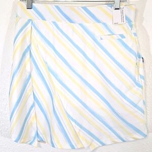 *NWT* PEBBLE BEACH Pale Turquoise/Yellow/White Stripes Skort w/Pockets, size Medium. One small pocket in the front and another pocket in the back. White shorts underneath. Material has stretch. Brand new with tags.