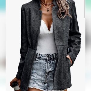 NWT PEHMEA Women's Open Front Houndstooth Blazer Jacket