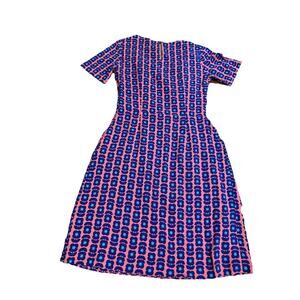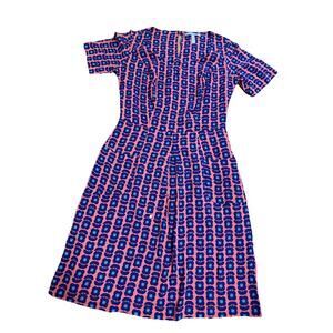 NWT PEPPERBERRY Women’s Geo Floral Front Pocket Super Curvy Dress Coral/Navy 8