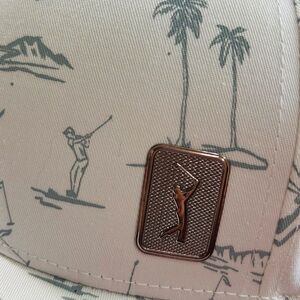 Classic white cap featuring a subtle golf-themed design. Ideal for golf enthusiasts.