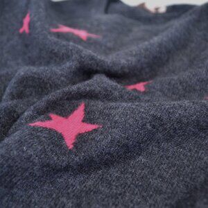 Soft 100% cashmere knit fabric in Chalkboard Heather gray with bright pink stars
