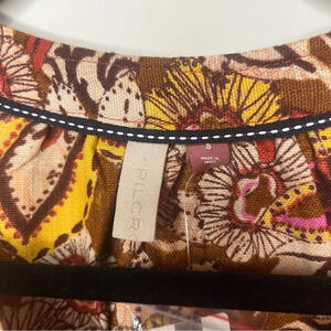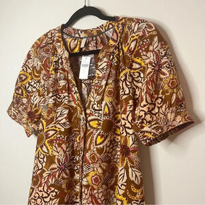 NWT PILCRO Boho Fall Colorful Puff Sleeve Cotton Linen Blend Tunic Dress