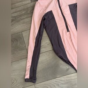 Chic blush and chocolate bodysuit. Features a sleek design with a comfortable fit. Half zip up. Has some marks - see pictures.