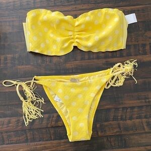 NWT PILYQ Scalloped Bandeau Bikini Set Yellow Polka Dot