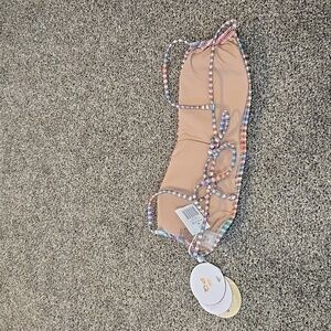 NWT PILYQ Women Nirvana Luna Top striped swim bikini sz L