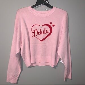 NWT PINK “DELULU” SWEATER SIZE XL Pink Red With bow Brand new