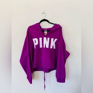 NWT | PINK | FLEECE CROP CINCHED CAMPUS HOODIE | Purple | XXL