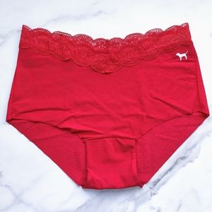 NWT PINK VICTORIA'S SECRET LACE WAISTBAND NO-SHOW BOYSHORT PANTY IN RED PEPPER M