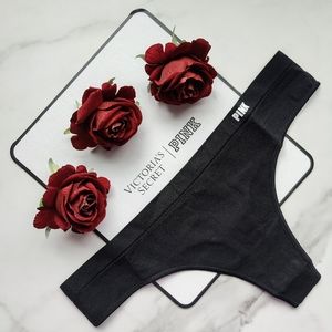 NWT PINK VICTORIA'S SECRET SMOOTH SEAMLESS THONG PANTY IN PURE BLACK SIZE MEDIUM