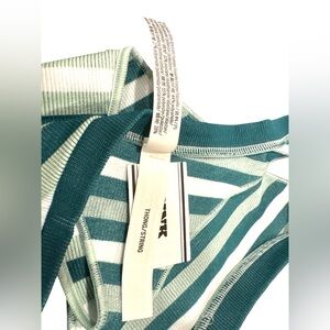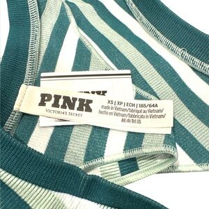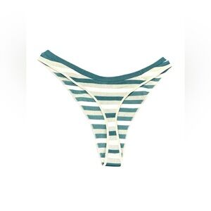 NWT PINK Victoria’s Secret Green & White Stripe Ribbed High Leg Thong – XS