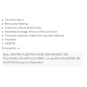 Body: 63% RECYCLED POLYAMIDE, 14% SPANDEX, 13% POLYAMIDE, 10% METALLIC FIBER