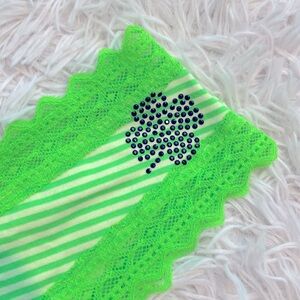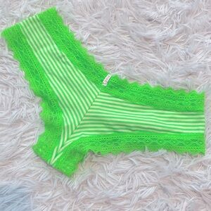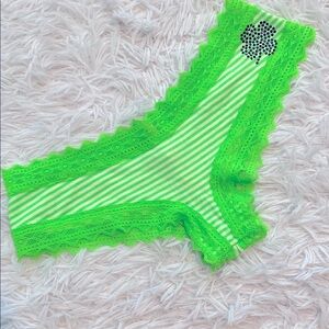 NWT PINK Victoria's Secret clover striped lime Green Lace Trim Underwear