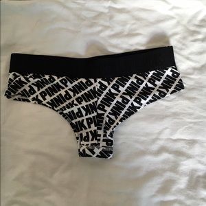 NWT PINK by Victoria's Secret white and black cheekster panties. Size Small.