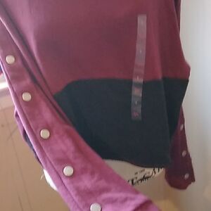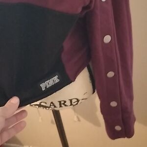 💋NWT PINK VS CROPPED MAROON/BLACK SNAP SLEEVE SWEATSHIRT SIZE LARGE