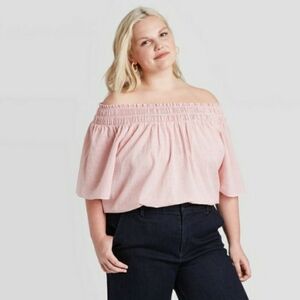 *NWT! PINSTRIPE SMOCKED YOKE SHORT SLEEVE TOP SIZE XL