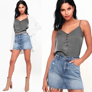 NWT PISTOLA 90s High Waist Distress Denim Cutoff Raw Fray Hem Mini Jean Skirt 27