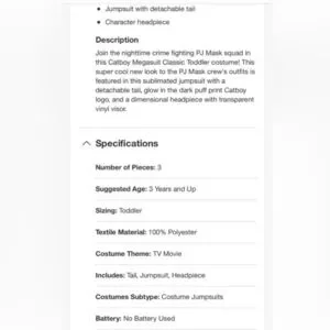 NWT PJ Masks Catboy Classic Halloween Costume Jumpsuit with Headpiece 3-4T New