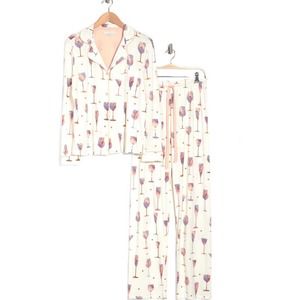NWT PJ Salvage Long Sleeve Wine Life Button-Up Shirt & Pants Pajamas (Sz L)