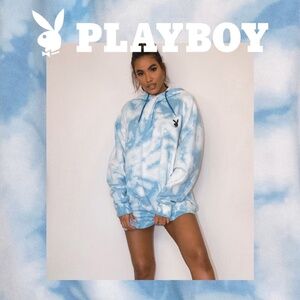 NWT PLAYBOY X MISSGUIDED TIE DYE OVERSIZED HOODIE DRESS - BLUE SIZE SMALL