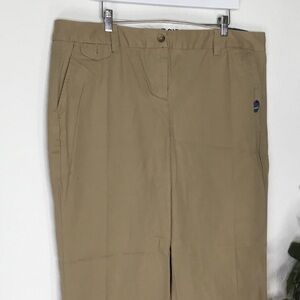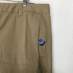 A new with tags pair of khaki pants. Pockets and belt loops. 2 “stains” on one leg (pictured) that could probably come out with washing but it has tags so didn’t want to wash it.