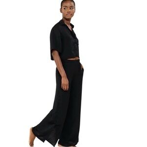 NWT PLUSH REVOLVE Faux Silk Crop Top & Wide Leg with Slit Black PJ Set Sz S