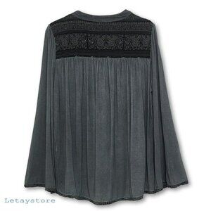 NWT POL Boho Lace with Tassels Wide Sleeve Relaxed Fit Blouse Tunic Top