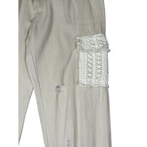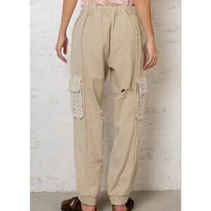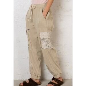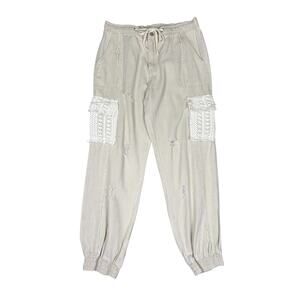NWT POL Crochet Cargo Jogger Pants Jeans Women's Large Cream Boho Hippie Cottage