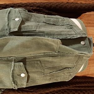 🥀NWT POL Green Denim Black Mineral-Washed Knitted Sleeves Jacket (L)🥀