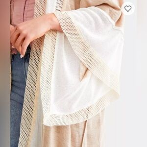 NWT POL Mixed Media Oversized Duster Cardi Beige Multi MED Lightweight Bohemian