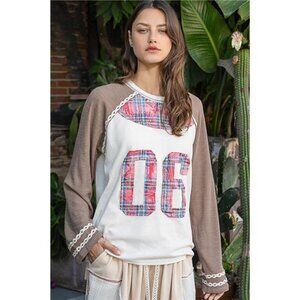 NWT POL Plaid Number 06 Raglan Sleeve T-Shirt