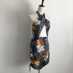 NWT POLLY PRINCESS Multicolor Patchwork Criss Cross Halter Neck JENNA Mini Dress