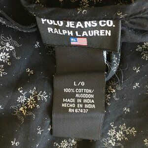 NWT POLO RALPH LAUREN Black Taupe Floral Print Tie Collar V Neck Shirt