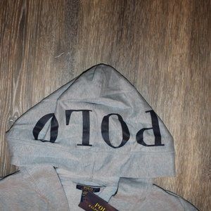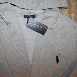NWT POLO RALPH LAUREN MEN'S COTTON HOODED FLEECE LOGO BATH ROBE BLUE GRAY
