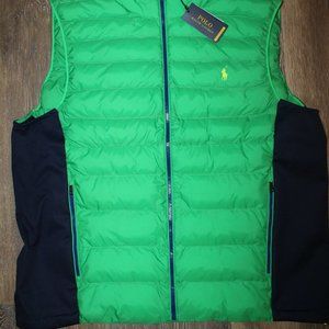 NWT POLO RALPH LAUREN MEN'S PACKABLE DOWN VEST NEON GREEN NAVY BLUE $240