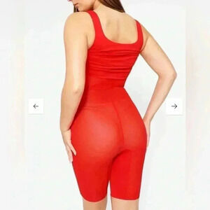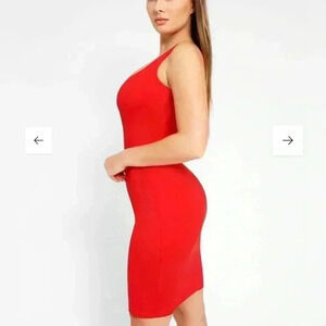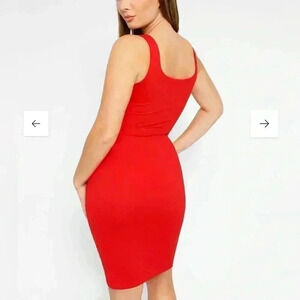 NWT POPILUSH Shapewear Dress Workwear Square Neck Sleeveless Midi - Holiday Red