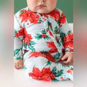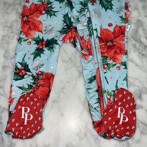Winter Lily ruffled one-piece with grip footies. Buttery soft viscose from bamboo, stretchy, and comfortable. Make your next playdate a stylish and comfortable one. There is nothing better than knowing your peanut is cuddled up in comfy sleepers!