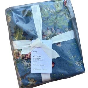 Beautiful European square reversible cotton percale comforter sham in the MEADOW pattern from Pottery Barn