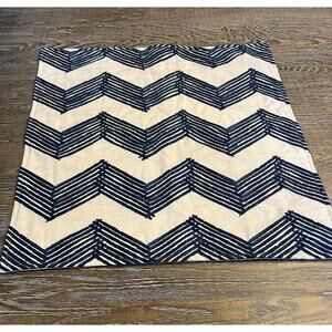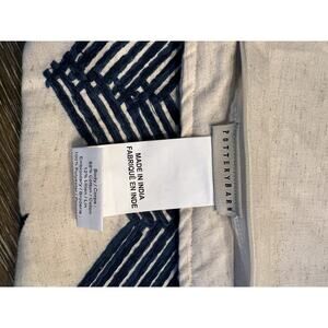NWT POTTERY BARN Embroidered Linen Cotton Pillow Cover Beige Blue 18x18