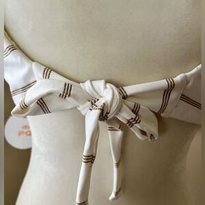 NWT PQ Swim Anthropologie Twist Ivory/Gold Adj Back Tie Padded/Lined Size D