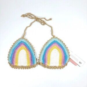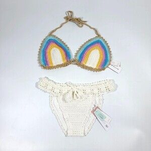 NWT PQ Swim Rainbow Romance Crochet Bikini Top & Lux Crochet Full Bottom Set