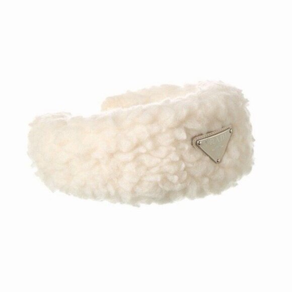 NWT PRADA SHEARLING HAIRBAND HEADBAND WHITE 100% Authentic W/box