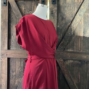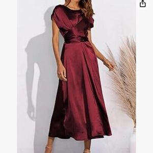 NWT PRETTYGARDEN 2023 Summer Satin Midi Cap Sleeve Tie Waist Elegant A-Line