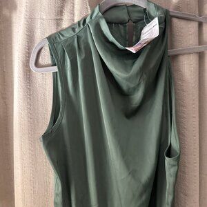 NWT PRETTYGARDEN Women's Formal Satin Dress Sleeveless Mock Neck Tie Waist, L