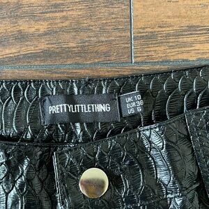 NWT PRETTYLITTLETHING Black croc embossed split hem pants SZ 6