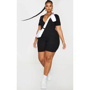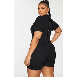 NWT PRETTYLITTLETHING PLUS BLACK FINE KNIT BUST DETAIL COLLARED SEAMLESS UNITARD